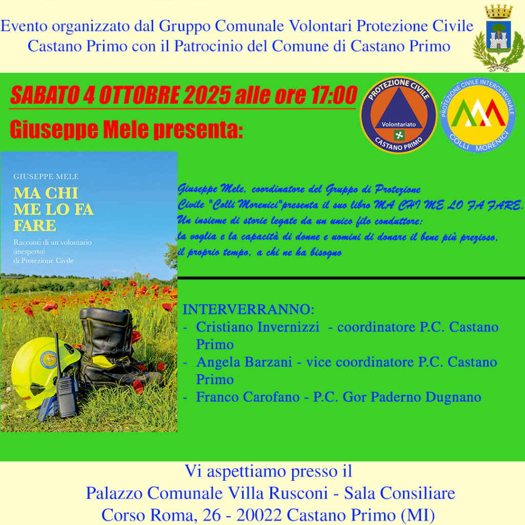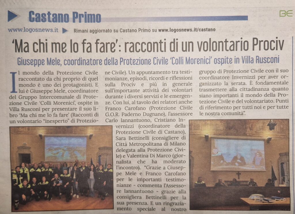 La prima presentazione “lontano” da casa e precisamente a Castano Primo (MI). Emozioni uniche vissute in una sala gremita di volontarie e volontari protagonisti di un dibattito ricco di aneddoti, racconti ed esperienze sul mondo del volontariato di Protezione Civile nella storica location di Villa Rusconi. L’evento, organizzato dal gruppo di Protezione Civile di Castano Primo, è stato patrocinato dal Comune che sulla pagina social ha riportato: