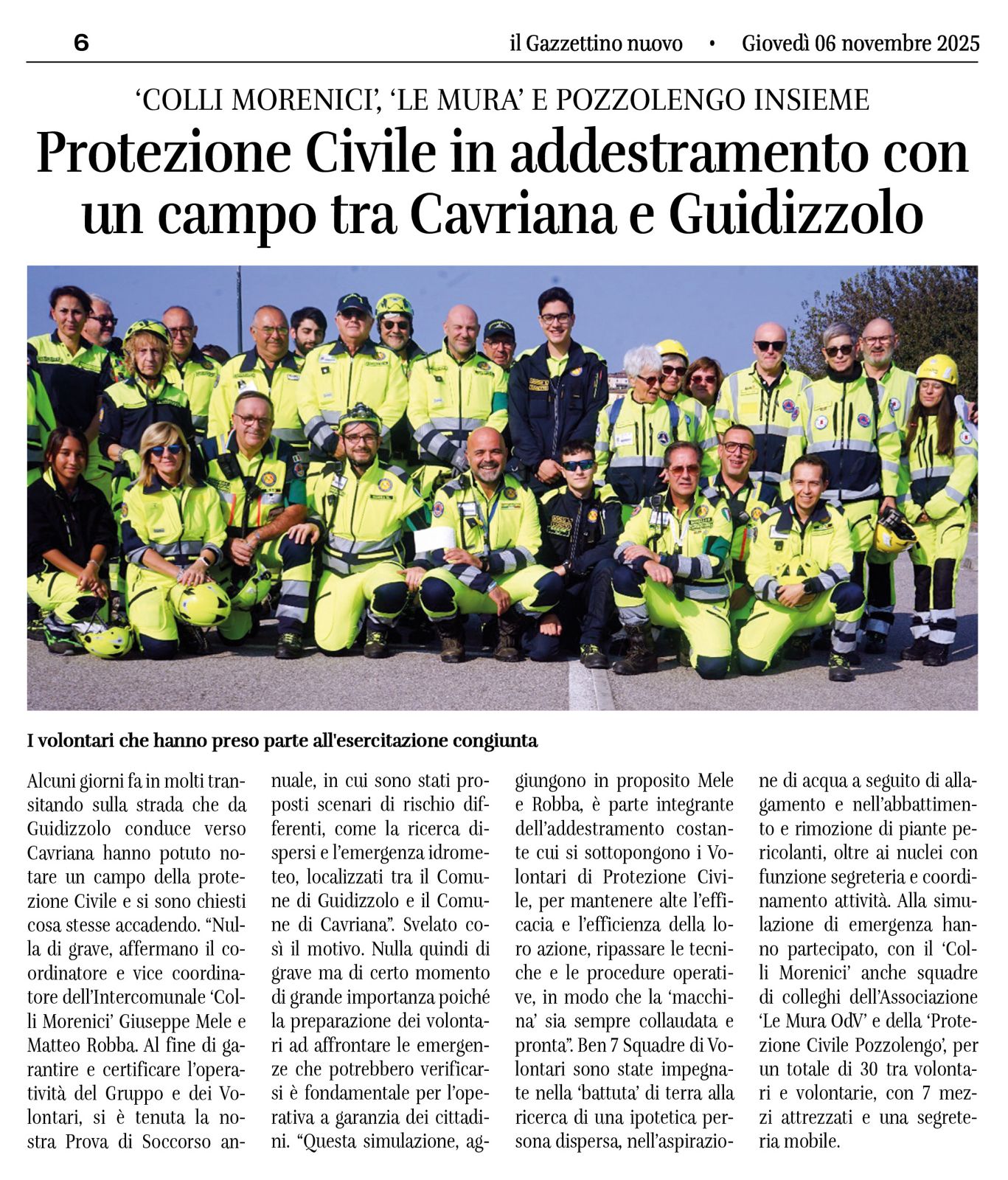 Chi ha letto il mio libro MA CHI ME LO FA FARE. RACCONTI DI UN VOLONTARIO INESPERTO DI PROTEZIONE CIVILE ricorderà che nel capitolo “Dolcetto o scherzetto?” avevo descritto la tanto temuta mia prima prova di soccorso: una simulazione di emergenza che è parte integrante dell’addestramento costante cui si sottopongono i Volontari di Protezione Civile, per mantenere alte l’efficacia e l’efficienza dell’operatività. Negli anni ce ne sono state tante altre e in ordine di tempo l’ultima si è tenuta lo scorso 18 ottobre 2025 giorno in cui sono stati proposti scenari di rischio differenti, come la ricerca dispersi e l’emergenza idrometeo, localizzati tra il Comune di Guidizzolo e il Comune di Cavriana. Ben 7 Squadre di Volontari sono state impegnate nella “battuta” di terra alla ricerca di una ipotetica persona dispersa, nell’aspirazione di acqua a seguito di allagamento e nell’abbattimento e rimozione di piante pericolanti, oltre ai nuclei con funzione segreteria e coordinamento attività. Alla simulazione di emergenza hanno partecipato anche squadre di colleghi ed amici dell’Associazione Le Mura OdV e della Protezione Civile Pozzolengo, per un totale di 30 volontari e volontarie, con 7 mezzi attrezzati e una segreteria mobile.