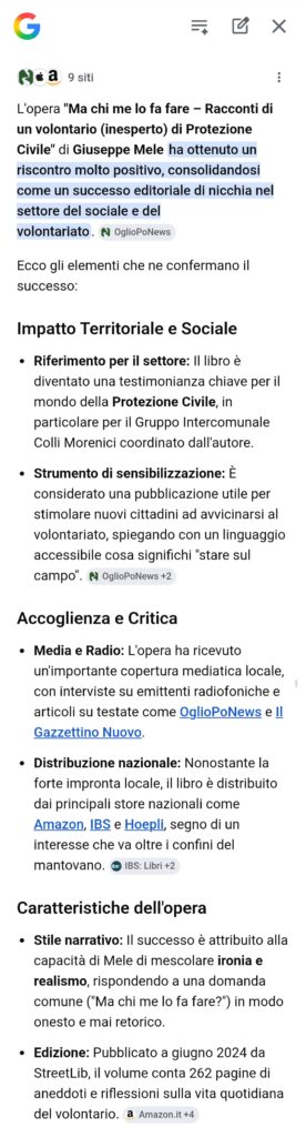 Le opinioni di Google giuseppe 27 March 2026 Recensioni Curiosando su Google ho trovato queste informazioni: lusingato