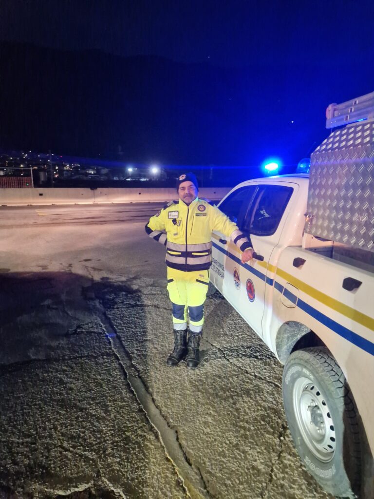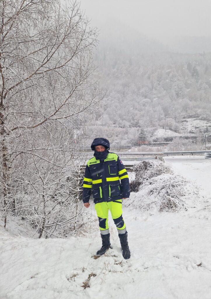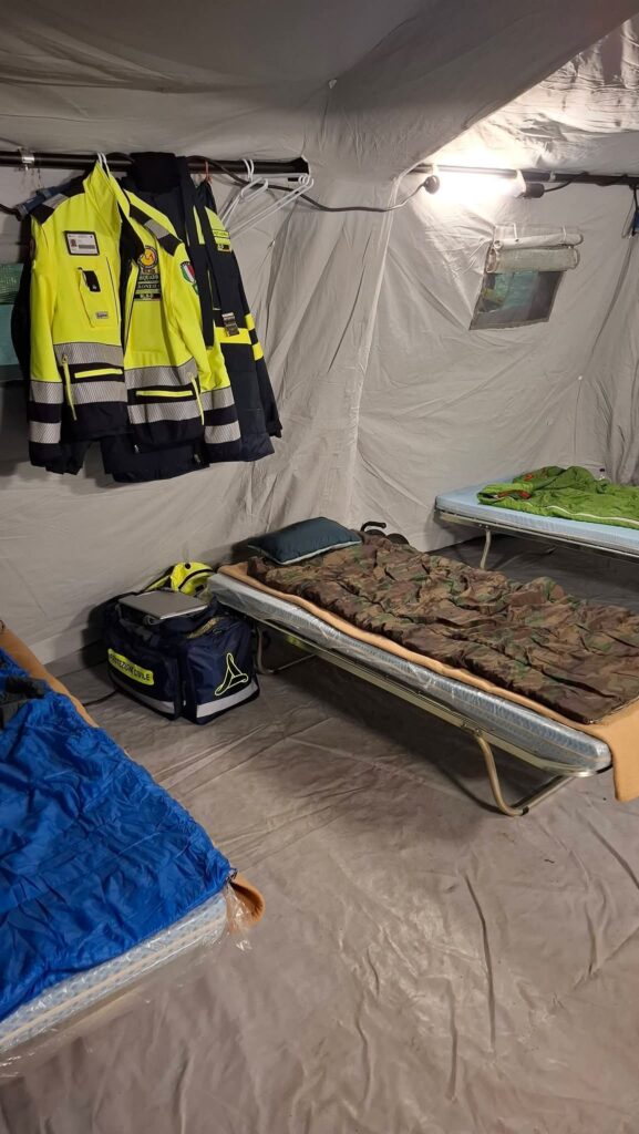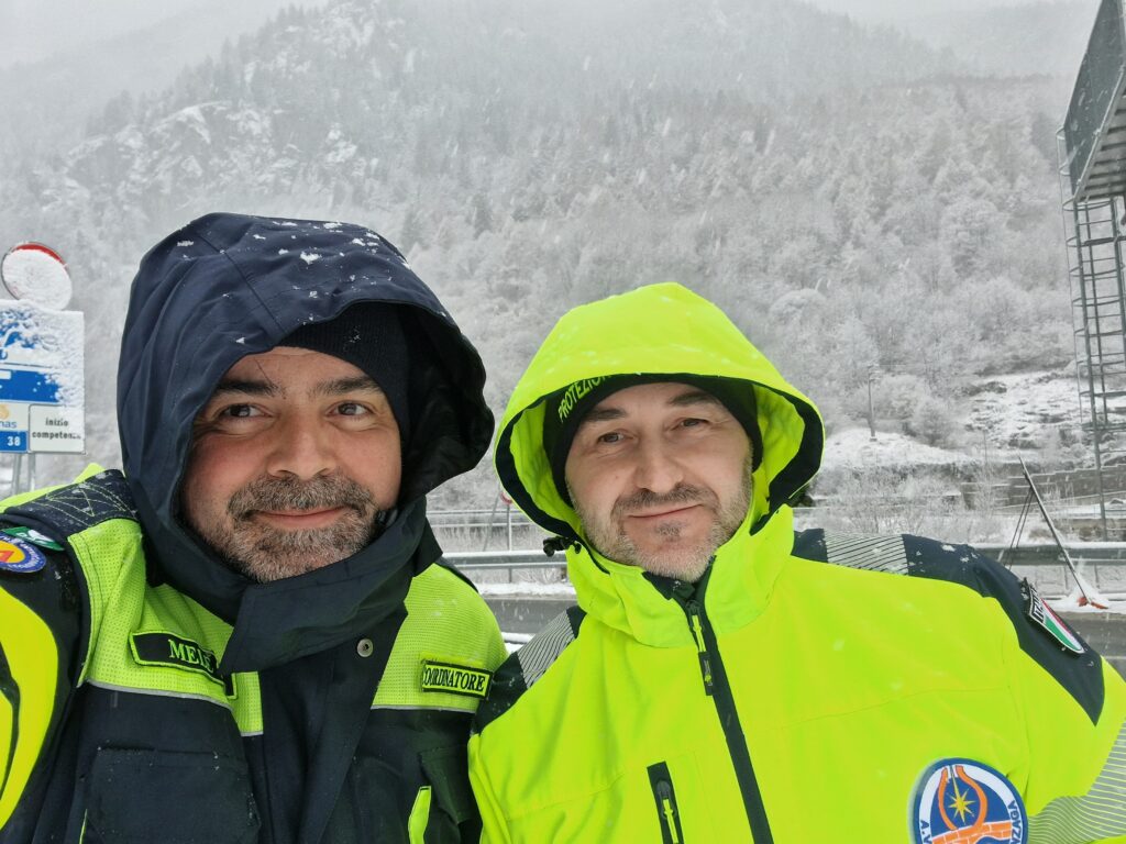 Dodici volontari sono stati dislocati nei campi base di Morbegno, Sondrio e Lovero, alternandosi in turni operativi dal 10 al 22 febbraio, con copertura h24. I giorni precedenti alla partenza sono stati dedicati a un’intensa fase di addestramento, con esercitazioni specifiche per il montaggio delle catene da neve e l’utilizzo dei mezzi 4×4, strumenti indispensabili per operare in sicurezza in un contesto montano e in condizioni climatiche estreme. I volontari hanno prestato servizio nei moduli UMPI (Unità Mobili di Pronto Intervento), garantendo pieno supporto alla sicurezza della popolazione e alla gestione delle criticità. Non sono mancate le difficoltà logistiche: temperature rigide, turni notturni e pernotto in tenda, tra brandine e sacchi a pelo, ma la determinazione e l’entusiasmo di dare il proprio contributo alla comunità hanno permesso di superare ogni ostacolo. Se il primo turno è stato caratterizzato da un’attività di ordinaria amministrazione, il secondo ha messo a dura prova uomini e mezzi. Una violenta bufera di neve ha investito la Valtellina, causando gravi disagi alla circolazione. Una squadra è stata impegnata nel monitoraggio del Passo dell’Aprica, dove ha fornito assistenza a numerosi automobilisti, aiutandoli nel montaggio delle catene.